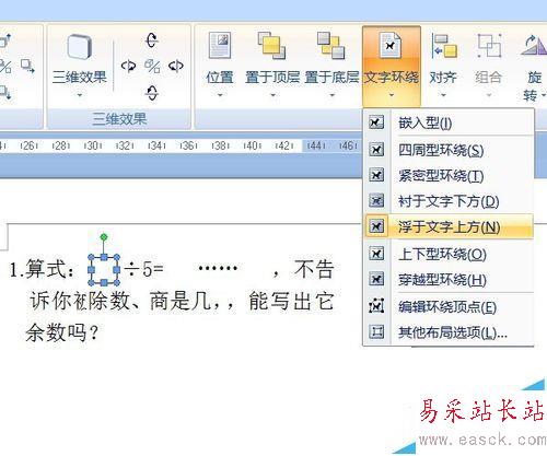 3、如果繪出的矩形擺放時總是不能如意,在工具欄的文字環繞中,將環繞類型改為浮于文字上方。