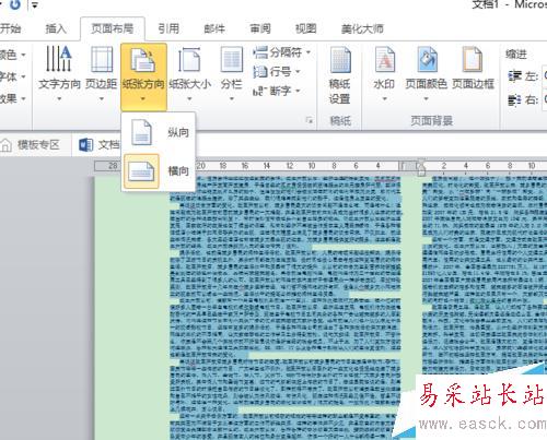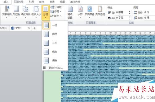 5、在“頁面布局”的“頁面設置”中對文章進行“分欄”和"頁面方向"的設置(這一步可根據個人的要求進行選擇)