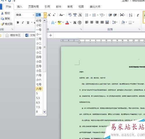 3、在“開始”中調節字體的大小,“八號”字體即可,(不要害怕字太小,打印出來十分清晰)