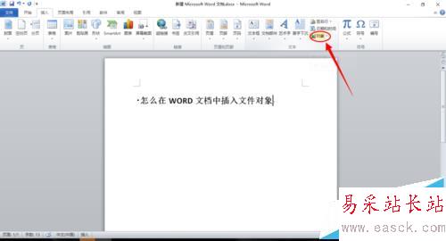 2、在插入欄中找到“對象”,點擊