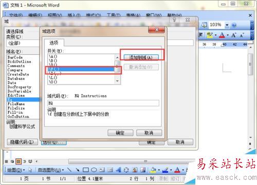 6、編輯域2:從“域選項(xiàng)”一欄中,找到“/F”,再單擊“添加到域”;