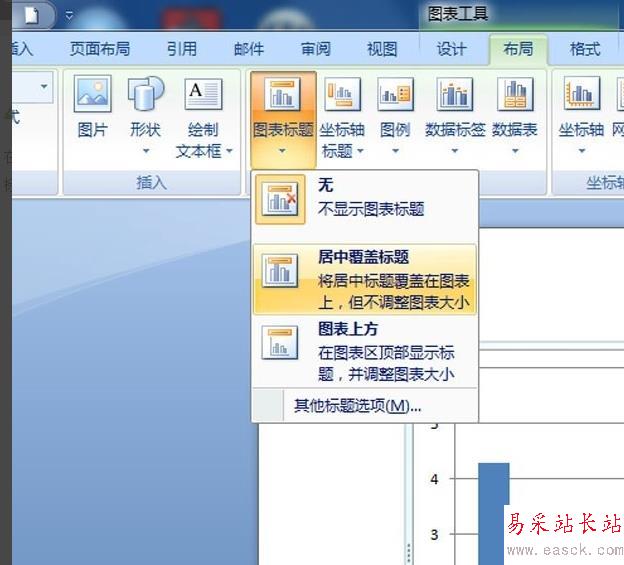 2、在“布局”選項(xiàng)卡上的“標(biāo)簽”組中,單擊“圖表標(biāo)題”。單擊“居中覆蓋標(biāo)題”或“圖表上方”。