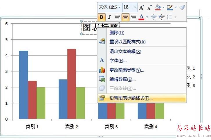 5、若要設(shè)置整個(gè)標(biāo)題的格式,可以右鍵單擊它,單擊設(shè)置圖表標(biāo)題格式,然后選擇所需的格式選項(xiàng)。