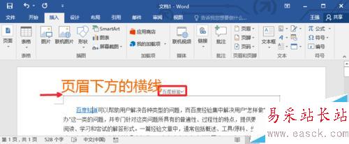 這里小編添加了一個頁眉以后,發現頁眉下方這里有個橫線,刪除頁眉,橫線也有。