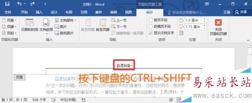 當然我們點擊頁眉,進入頁眉編輯模式以后,可以按下鍵盤的CTRL+SHIFT+N也可以快速的去除頁眉下方的橫線,也是清除格式以后,實現同樣的功能。