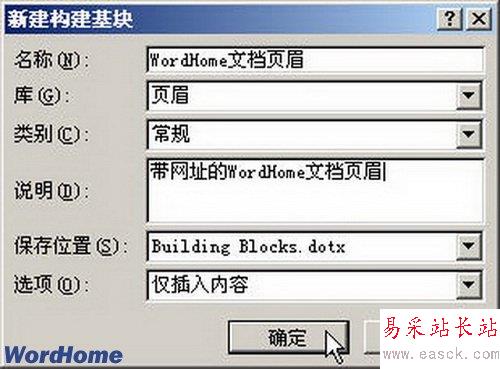 第3步,打開“新建構(gòu)建模塊”對話框,分別輸入“名稱”和“說明”文字,其它選項(xiàng)保持默認(rèn)設(shè)置,并單擊“確定”按鈕,如圖4所示。
