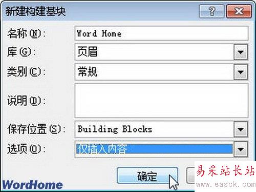 第3步,打開(kāi)“新建構(gòu)建模塊”對(duì)話(huà)框,分別輸入“名稱(chēng)”和“說(shuō)明”,其它選項(xiàng)保持默認(rèn)設(shè)置,并單擊“確定”按鈕,如圖4所示。