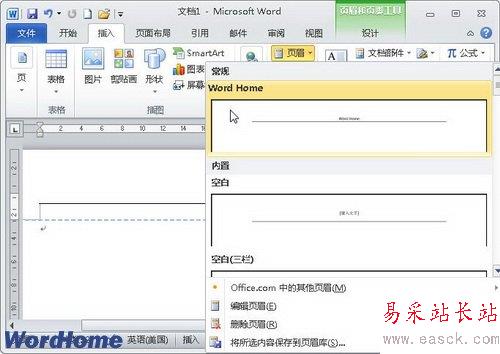 Word2010中的庫(kù)主要集中在“插入”功能區(qū),用戶(hù)也可將自定義的設(shè)置添加到特定的庫(kù)中,以便減少重復(fù)操作。下面以在頁(yè)眉庫(kù)中添加自定義頁(yè)眉為例,操作步驟如下所述: