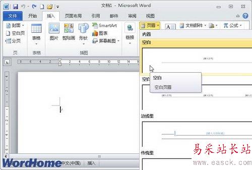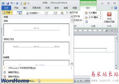 對(duì)話(huà)框如果用戶(hù)需要插入自定義的頁(yè)眉,則只需從Word2010頁(yè)眉庫(kù)中選擇即可,如圖5所示。