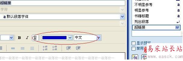 就在窗品的右側,有個樣式,里面有個超鏈接。然后鼠標放上面,進行修改樣式,就可以了。