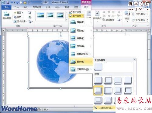 怎樣在Word2010文檔中設(shè)置剪貼畫棱臺(tái)效果
