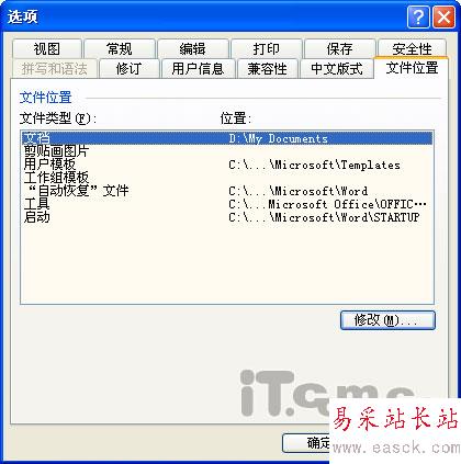 點擊菜單命令“工具→選項”,在打開的“選項”對話框中點擊“文件位置”選項卡,然后在列表中選中“文檔”項目,并點擊下方的“修改”按鈕。在打開的“修改位置”對話框中選定需要的文件夾再點擊“確定”按鈕就可以了。