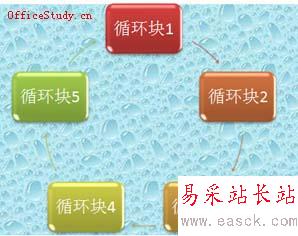 這里以插入一個循環結構的圖形來說明SmartArt的基本用法。選擇循環結構中的塊循環,單擊“確定”,在左邊的框中可輸入文字,輸入的內容立刻就可以顯示在圖表之中,字體等等格式是按照預先模板的格式顯示的,可選中文字后單擊右鍵就可調整文字的格式,也可單獨對各個區塊用鼠標調整。