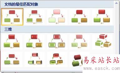 在Word 2007中增加了一個“SmartArt”工具,有了這個工具制作出精美的文檔將變得非常容易。SmartArt圖形主要用于演示流程、層次結構、循環或關系。SmartArt圖形包括水平列表和垂直列表、組織結構圖以及射線圖和維恩圖。