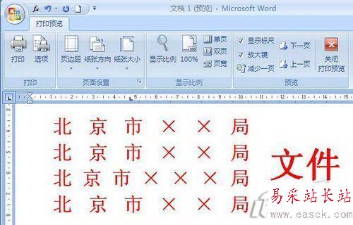 圖1 Word 2007插入表格 先選中第一列表格,設(shè)置好字體、字形及字號(hào),之后就是按實(shí)際情況調(diào)整行距了。將整個(gè)表格選中,在菜單欄中點(diǎn)擊“開(kāi)始→段落”,在打開(kāi)的”段落“窗口”中,在“縮進(jìn)和間距”標(biāo)簽下的“間距”中,點(diǎn)擊“行距”右側(cè)的下拉三角,選擇“固定值”,在“設(shè)置值”中選擇合適的磅值,點(diǎn)擊“確定”即可。再選中第二列表格,右擊鼠標(biāo),選擇“合并單元格”,合并完成后,再次右擊鼠標(biāo),用鼠標(biāo)指向“單元格對(duì)齊方式”,選擇“水平居中”,設(shè)置并調(diào)整字體、字形及字號(hào)等。將整個(gè)表格選中,設(shè)置字體顏色,調(diào)整表格并將表格選拖放到合適的文檔位置,再在菜單欄點(diǎn)擊“表格工具→設(shè)計(jì)→邊框”選擇“無(wú)框線”,將單元格邊框設(shè)置成“無(wú)框線”,點(diǎn)擊菜單欄中的Office圖標(biāo),用鼠標(biāo)指向“打印”,選擇“打印預(yù)覽”,即可看到預(yù)覽效果(如圖02),這樣四(多)行合一工作效果就此完成。