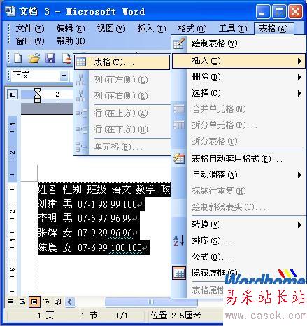 在Word2003中進行Word表格制作時,如果事先不清楚表格的行數和列數,可以采取先輸入表格內容再插入表格的方式進行Word表格制作,操作步驟如下所述:第1步,打開Word2003窗口,輸入Word表格內容,分別以“空格”符代表“列”,以“回車”符代表“行”,如圖2008071104所示。word圖2008071104 輸入表格內容第2步,選中輸入的表格內容,在菜單欄依次單擊“表格”→“插入”→“表格”菜單命令,如圖2008071105所示。圖2008071105 執行插入表格命令 上一頁12 下一頁 閱讀全文