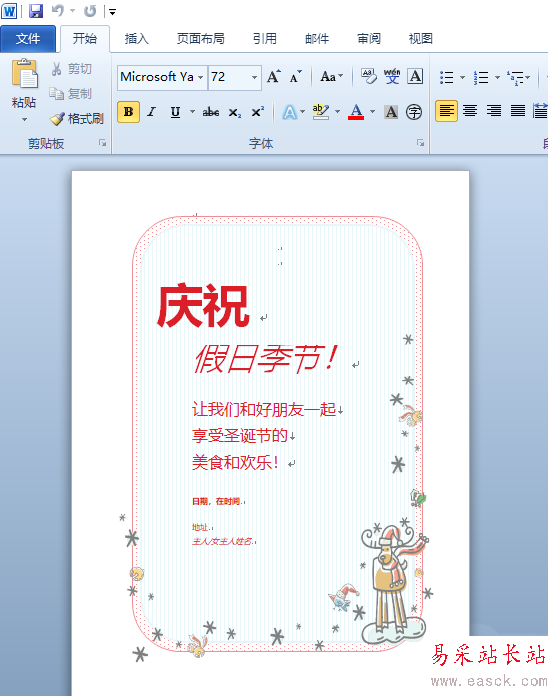 7、最終結果如圖所示,這樣我們就制作好一個假日聚會邀請卡了。