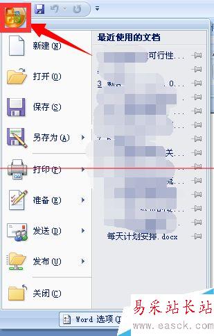 2、點擊左上角的“Office”圖標,如箭頭所示。
