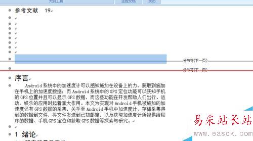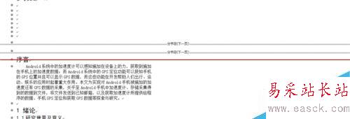 1、打開無法刪除空白頁的Word文檔,例如下圖(序言這一頁前面有空白頁)