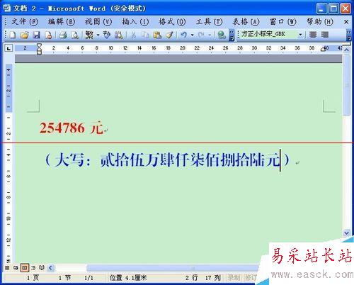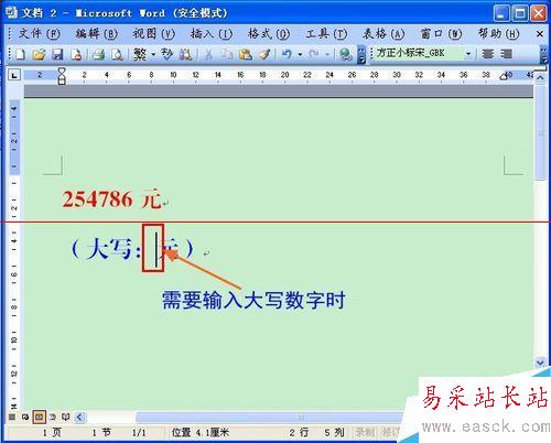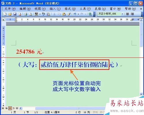 第七步:頁面光標位置自動完成大寫中文數字輸入。