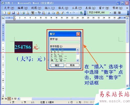 第三步:在“插入”選項卡中選擇“數字”點擊,彈出“數字”對話框。