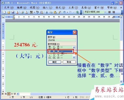 第五步:接著在在“數字”對話框中“數字類型”下框選擇“壹、貳、叁...”