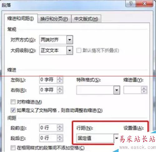 4、選中全部文字,進入“段落”設置,調節行距為“固定值17磅”。