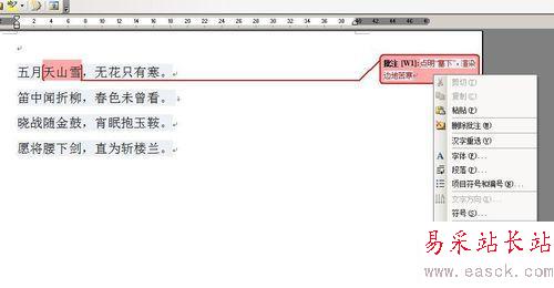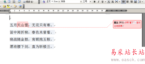 2、打開文檔后如圖所示,接下來刪除“天山雪”的批注