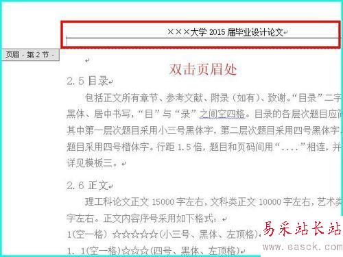 6、在文檔頁面雙擊確認操作:上述操作完成后刪除頁眉線的工作就完成了,此時我們只需用鼠標左鍵在文檔頁面中的任意雙擊即可確認操作并返回,完成后效果見下圖。