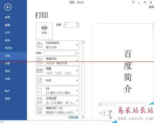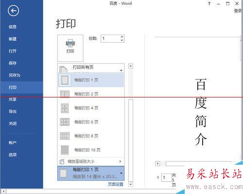 WORD2013 一張A4紙打印多頁的方法,以一張A4紙打印四頁為例。