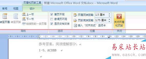 5.在“設計”-工具欄一行,選擇“首頁不同”前面的☑,即可封面是沒有頁碼編號的。關閉頁眉頁腳即完成 頁碼的設置。