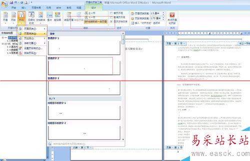 4.重新選擇設計”-頁碼-頁面低端-選擇需要的頁碼顯示位置,點擊即可,當前插入頁碼,并點擊“鏈接到前一頁頁眉”,使其不被選中。那么頁面的頁碼即正文從1開始編寫頁碼。
