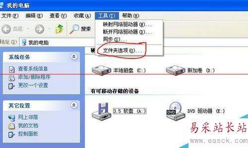 1、雙擊“我的電腦”--->工具---->文件夾選項,其實任意一個文件夾下的菜單都有這個選項