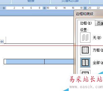 4、如圖所示,剛才選中的地方已經只有橫線了,之后選中最后一行,右鍵單擊,選“邊框和底紋”。
