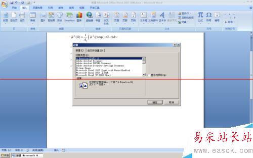 1、首先,打開word,選擇插入—對象—對象(J),會彈出一個對話框,在新建這一選項卡下選擇對象類型為“A Equation(公式3.1)”,點擊確定后就會出現一個編輯框和名為“公式”的工具條。