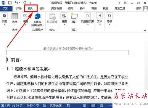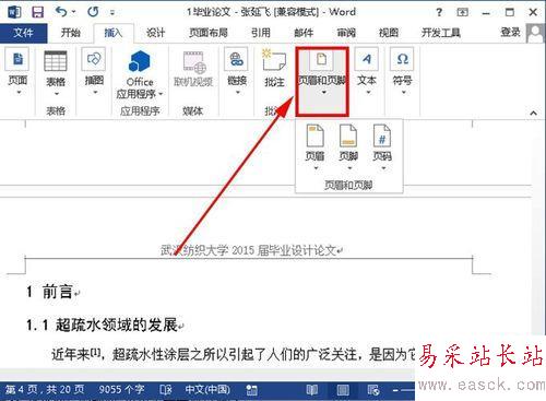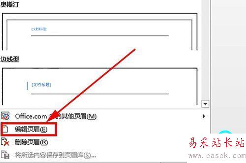 上述操作完成后我們要在文檔界面上方找到“插入”選項如下圖1中紅色框選中處,單擊“插入”選項后我們要在該界面下找到“頁眉和頁腳”命令如下圖2中紅色框選中處。然后單擊“頁眉”選項并在該選項下找到并單擊“編輯頁眉”命令如下圖3中紅色框選中處。