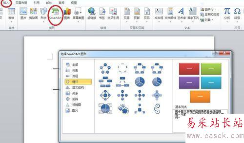 5、可以插入smartart,插入——smartart,就可以插入各種輕巧快捷方便的smartart圖形了,讓文章生色不少國。
