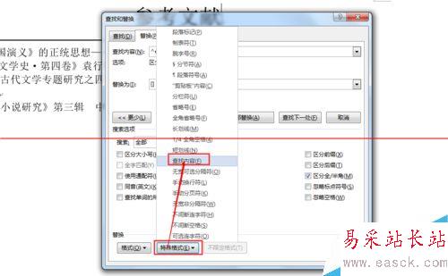 6、然后點擊【特殊格式】,在彈出的菜單中選擇【查找內容】,其符號為^&,然后點擊【全部替換】。