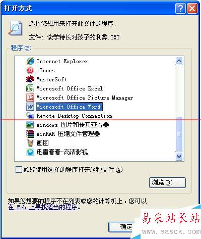 9、在出現的對話框中選擇Word軟件,然后點擊確定。