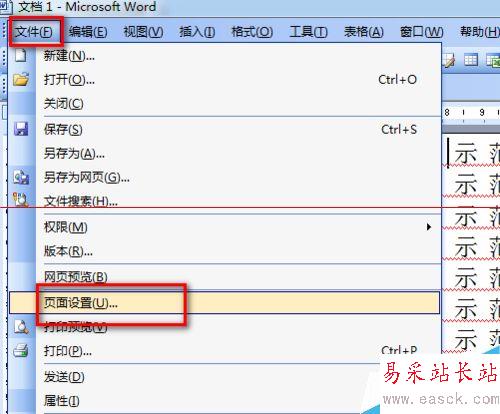 3、其實(shí)最有效的方法仍是通過(guò)“文檔網(wǎng)格”進(jìn)行調(diào)節(jié)。如圖所示,選擇word菜單欄中的“文件”-“頁(yè)面設(shè)置”,如圖所示。