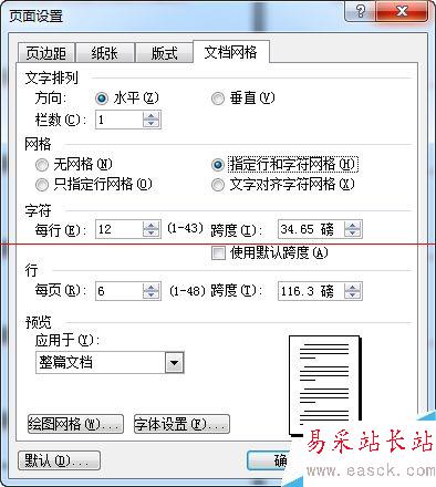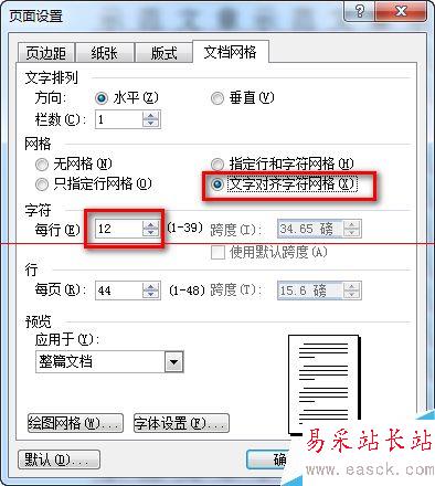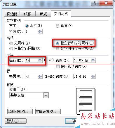 2、這種方法雖然簡(jiǎn)單,但經(jīng)常會(huì)發(fā)現(xiàn)很不方便,對(duì)于指定行數(shù)和字?jǐn)?shù)的文檔很難調(diào)正確,如圖,設(shè)定的是每行12字,但實(shí)際情況確實(shí)每行10字。