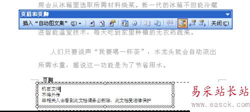 在一些word文檔中,看到文檔的重要說明出現在每一頁,很高上大,如何實現呢。如下圖所示