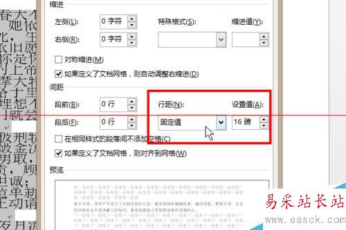 5、找到間距一欄,里面有行距和設置值.我們可以看到設置成了固定值.