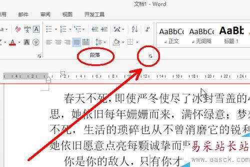 9、方法二:當然我們除了右擊鼠標外還有第二個方法,點擊段落旁邊的箭頭圖標,如圖