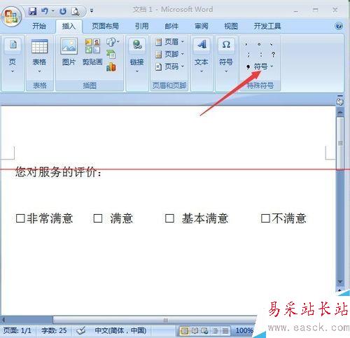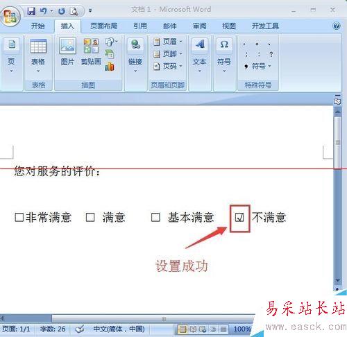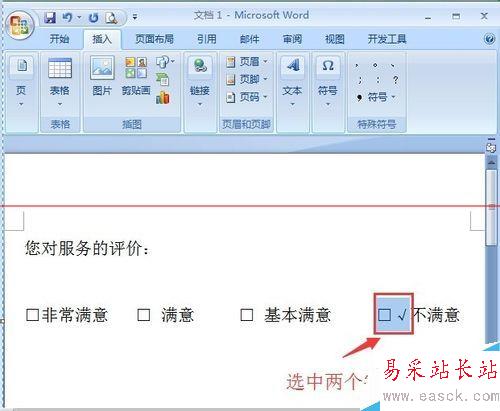 2、輸入跟方框選擇有關的內容,比如,我們輸入服務滿意度調查,分成幾個檔,每一檔前面都有一個小方框,如圖所示。