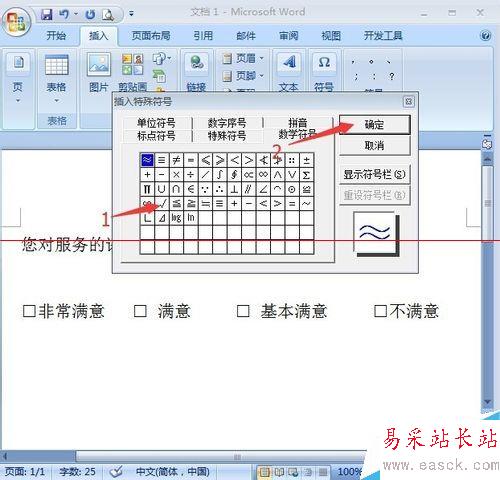 5、彈出了插入特殊符號的對話框,找到鉤(對號)的符號,然后點擊“確定”按鈕,如圖所示。