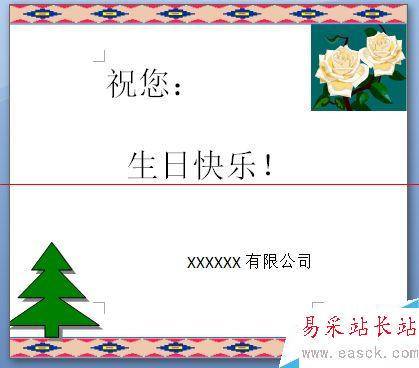 6、DUANG……請看效果圖。當(dāng)然裝飾是另外加上去,這里提供的是只打印字的,裝飾是已經(jīng)在你需要打印的紙張上面。如果需要打印這些裝飾,可能需要調(diào)整一下頁邊距,你懂的。