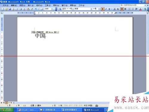 6、當我們輸入“中國”兩個字的時候,在文字上方就會提示整個詞條