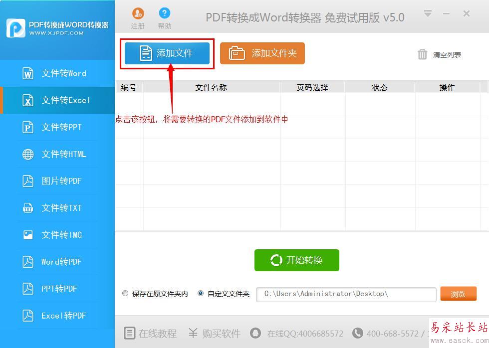 步驟2:點擊“添加文件”按鈕,將需要轉換的PDF文件添加到軟件中,或使用鼠標將文件拖拽到軟件界面中進行添加。