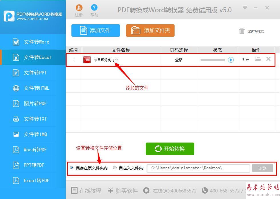 步驟3:設置轉換文件的存儲路徑。默認情況下軟件是將文件保存在桌面上,這里我們可以將轉換文件設置成保存在原文件夾內,也可以選擇自定義文件夾,然后通過“瀏覽”選擇存儲位置。